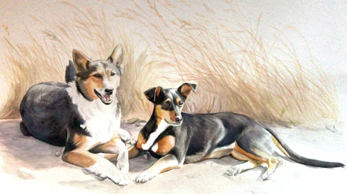 Portrait "Strand-Dogs" Aquarell 30 x 40 cm