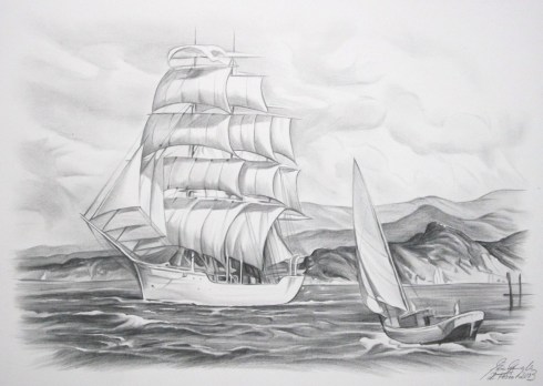 Segelschiff Bleistift 30 x 40 cm